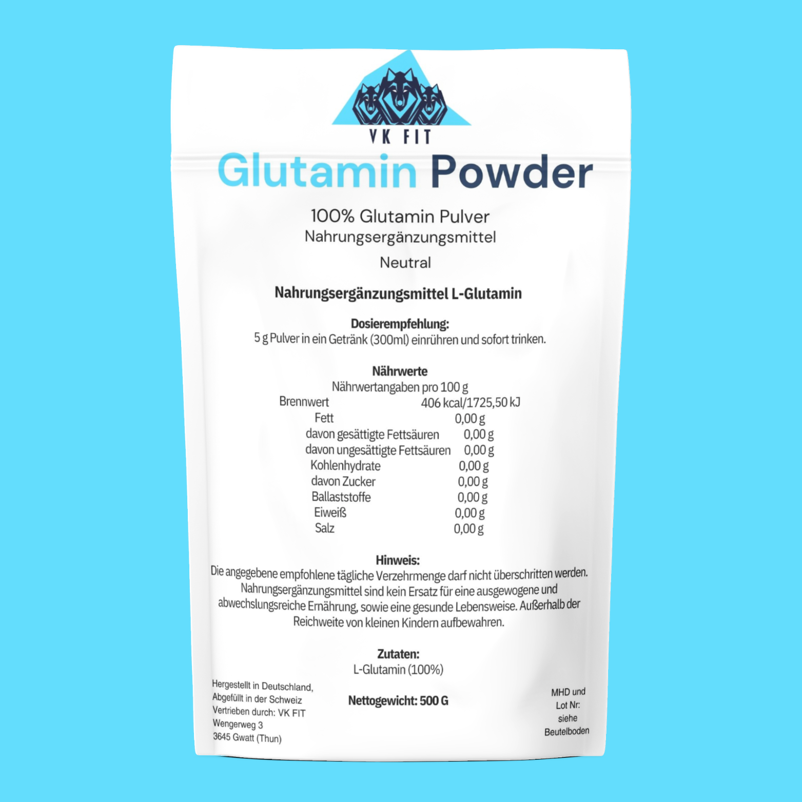 Poudre de glutamine - Glutamine 100 % pure - Sachet de 250 g
